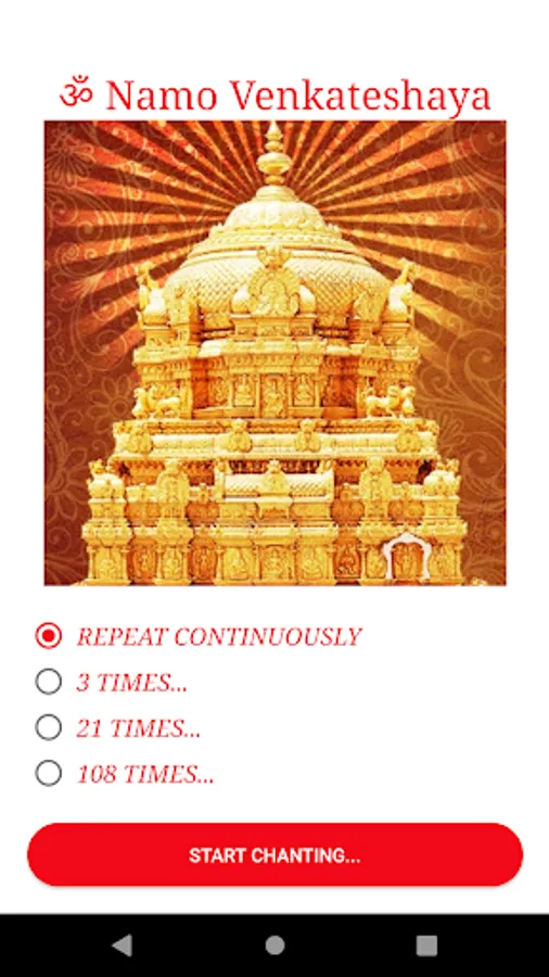 This app is an Audio APP containing the chanting of Sri Venkateshwara naam japa mantra 'ॐ Namo Venkateshaya'.