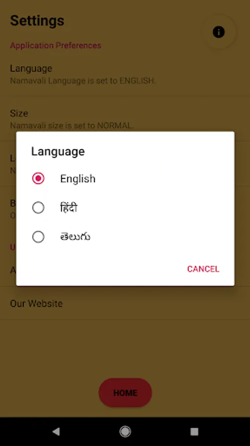 -Full Screen mode for improved and persistent concentration of the devotee.