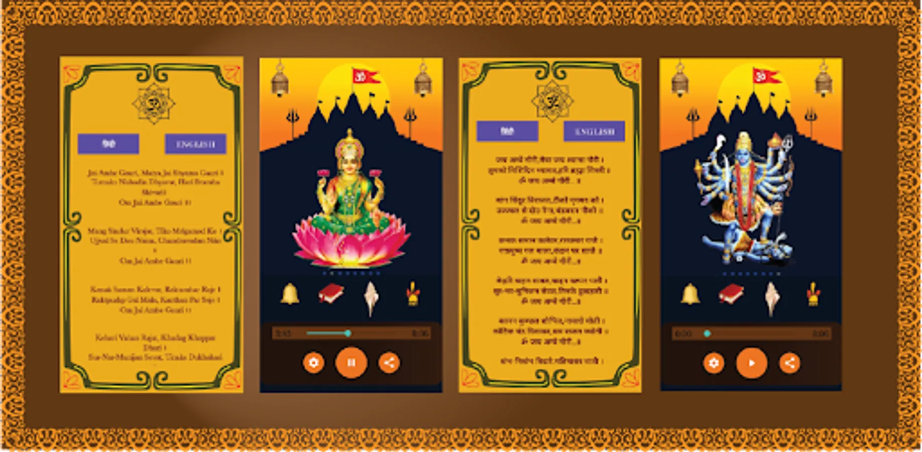 This app provides most famous Hindu God-Goddess Aarti at one place. This app is for all religious people who want to hear all God-Goddess Aarti at a single place with complete devotion. Navratri Songs Hindi Arti Mata, God Ganesh Aarti Song Chalisha, Ganesh Aarti Sangrah Mantra.