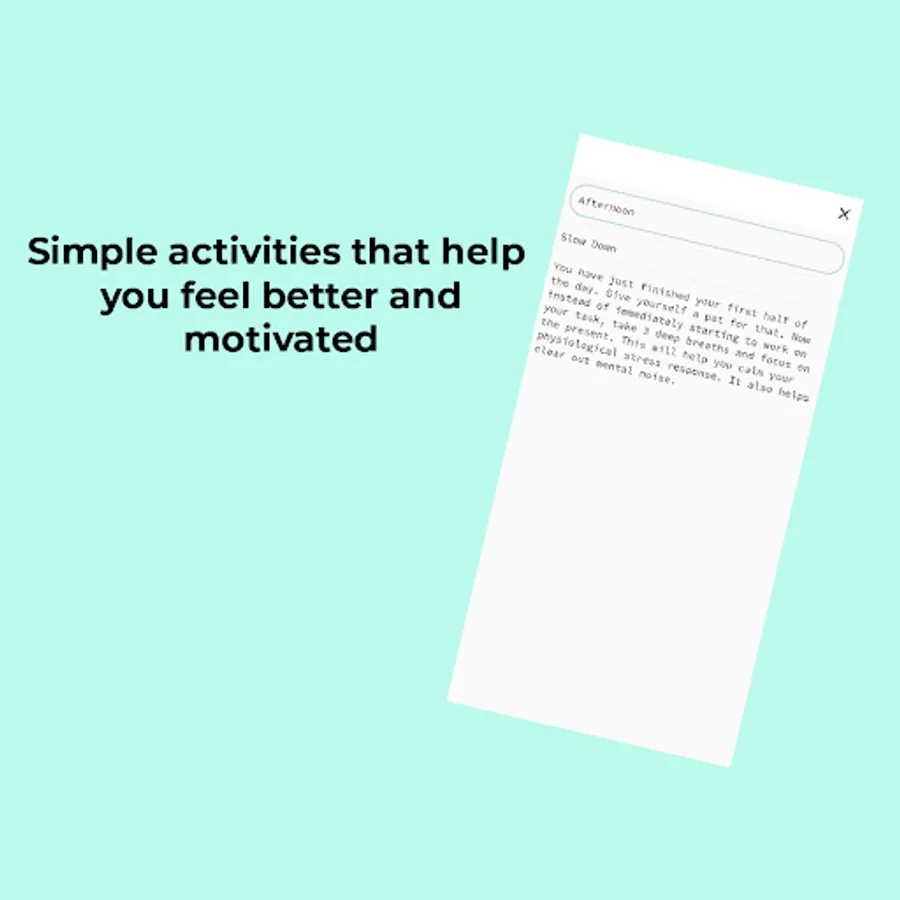 Being-U is a new mobile application where our goal is simple. We want to provide simple 5-minute activities that help you feel better. Our activities are broken into 3 categories: Morning, Afternoon and Evening.