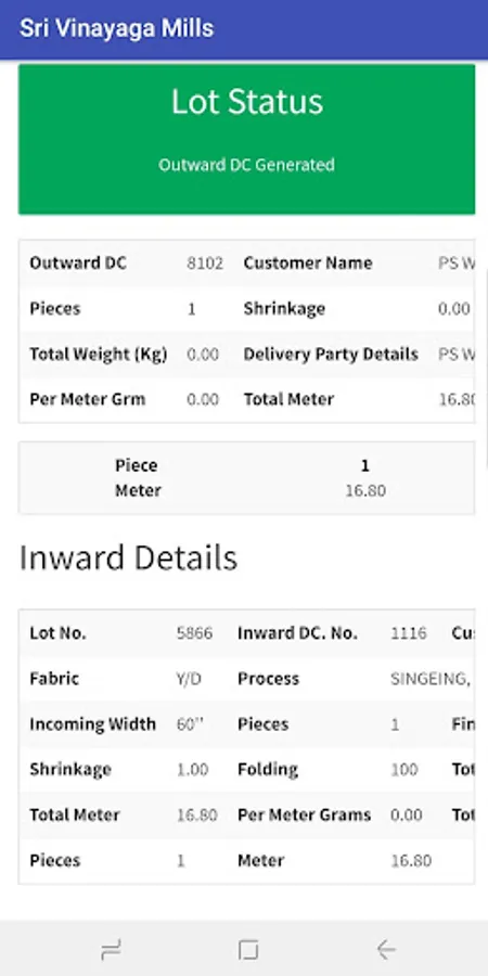 Sri Vinayaga Mills APP provides its customer to track their order various status