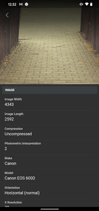 This utility lets you open a image from your gallery to view its Exif data.