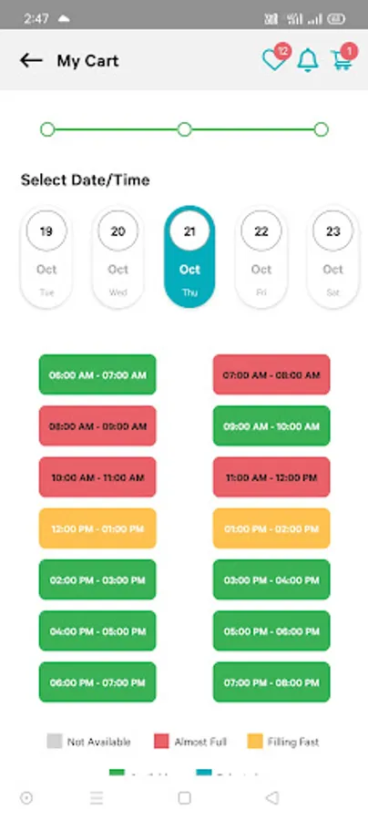 Visibility of Real time Availability of Slot for Home collection Booking.