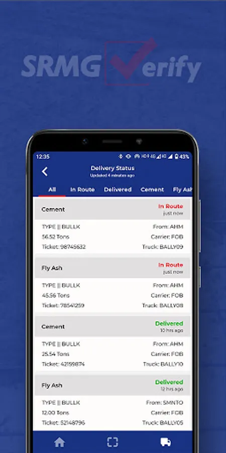 "SRMG Verify users can scan SRMG tickets and give the customer the ability to see the shipping status of their expected delivery at any moment in time."