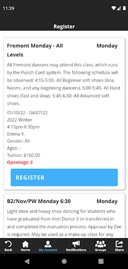 The SRNB app allows you to manage your account with ease, register for classes and special events. You'll also receive important notifications about class changes, closings, registration openings, special announcements, and upcoming events.