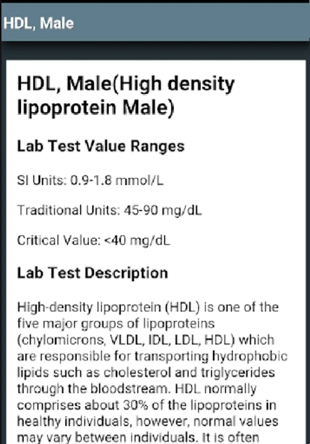 - Information regarding all Medical Lab Tests, Diagnostic Lab Test Values.