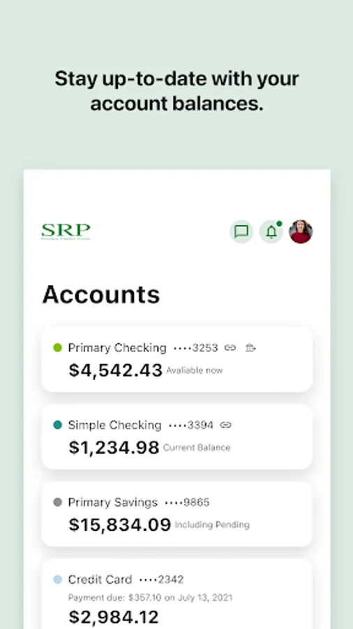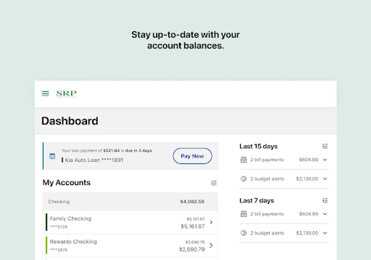 Bank with confidence – SRP Federal Credit Union’s Mobile App allows you to manage accounts from your mobile device...anytime, anywhere.