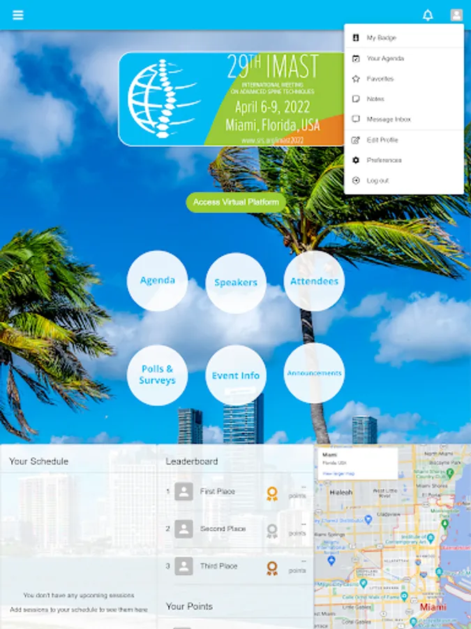 - A detailed meeting agenda with the ability to create a personalized schedule and take notes during sessions