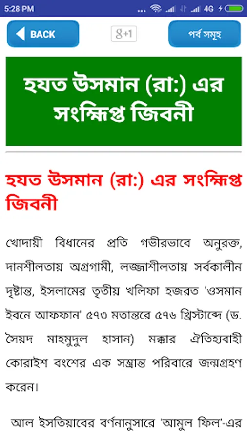 This app is based on the life of char kholifar jiboni.