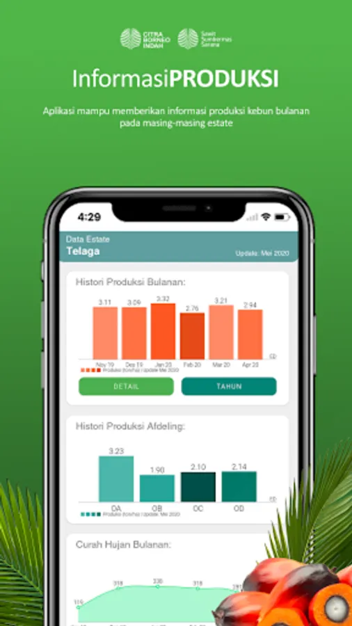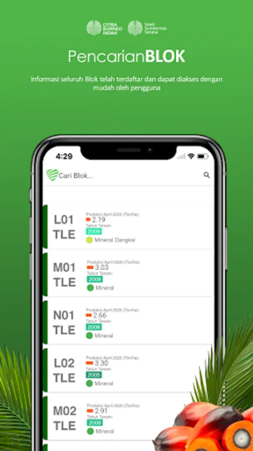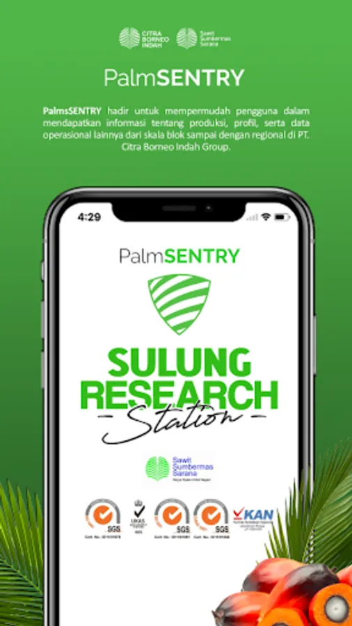 PalmSENTRY SRS is an application with an android platform which has the aim of making it easier for users to find out the estimated production on blocks at PT. Citra Borneo Indah Group. This application has input in the form of Regional, Estate, Afdeling and Block data which is then entered into several available models so that it can display estimated production data each year.