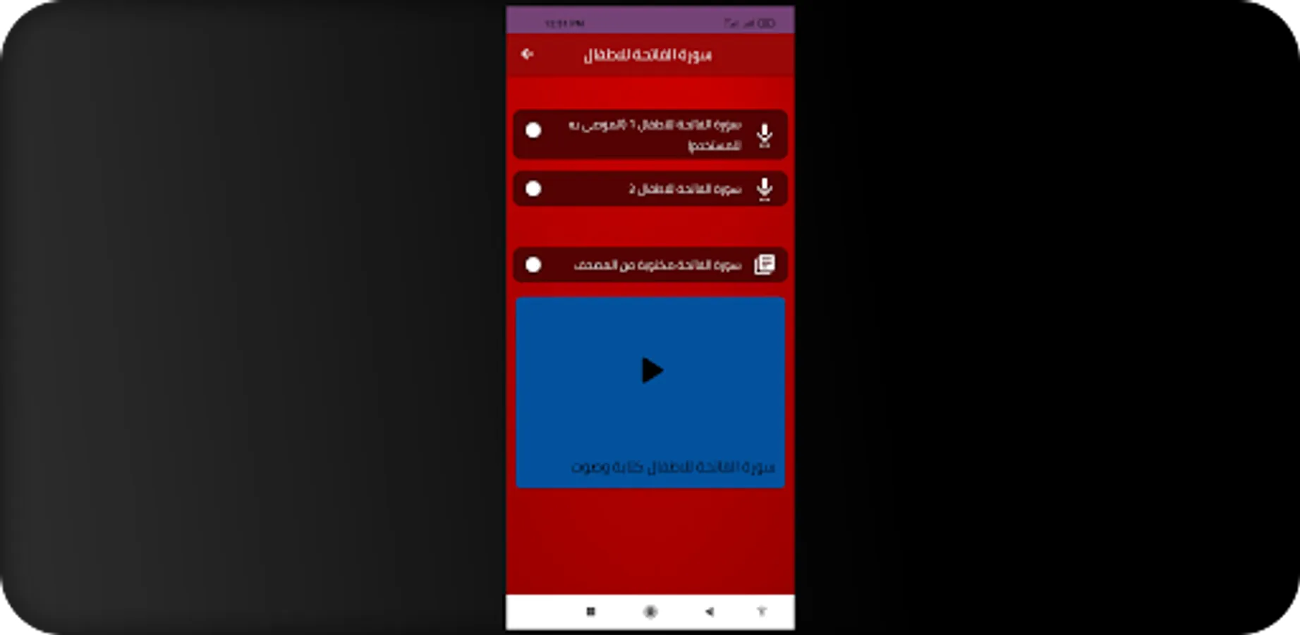 سورة الفاتحة للاطفال mp3 داخل مشغل صوتي