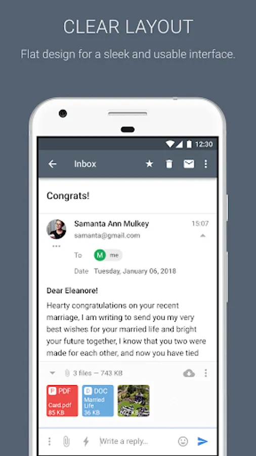Clean Navigation - Beautiful, flat design focuses on what is important – email.