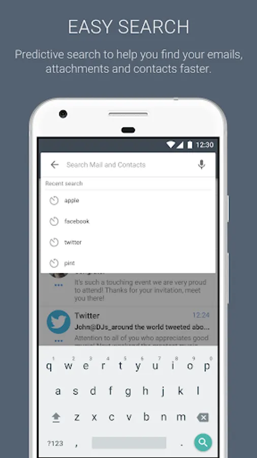 Smart Search – Powerful predictive search allows you to find any email, contact or attachment quickly and accurately from all accounts whether it’s stored locally or on the server.