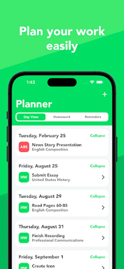 Easily plan your homework out and set reminders for yourself, without needing a notebook or manually entering in courses yourself. Add homework assignments and tasks, seamlessly integrated with your HAC courses. View your work assigned by teachers from HAC and your own work, side by side, day by day, all in the same place. Set push notifications to stay on top of your work.