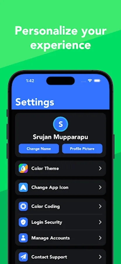 GradeWay can be used in light and dark mode! Switch between 10 different color themes. You can even login with face or touch ID, give yourself a profile picture, or change your display name!