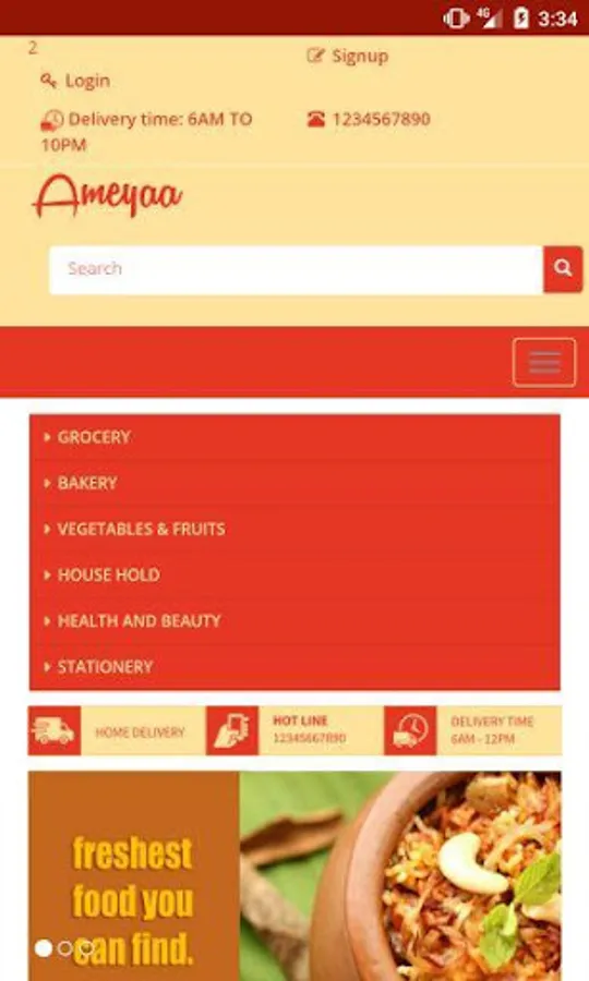 You can not only order Grocery Ameyaa, but also, Organic Products, Health Care products, Personal Care products, Vegetables & Fruits, Stationery, Cleaning Agents, Pooja Accessories, Baby Care products, Pet Food, Fish and Meat & The recently launched Videos.
