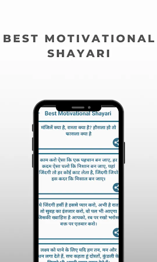 Our inspiration application has motivating shayari that can urge you to get up, make a move, and accomplish the work that necessities doing. Shayari are much of the time your very own impression assessment just improved by a decent essayist. They make a street to impact the perspective, feeling, and acting.
