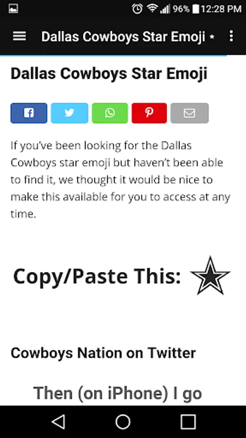 -- Need to copy the Cowboys Star Emoji? No problem. Slide open the Menu and there's a link straight to it.