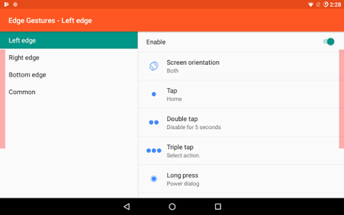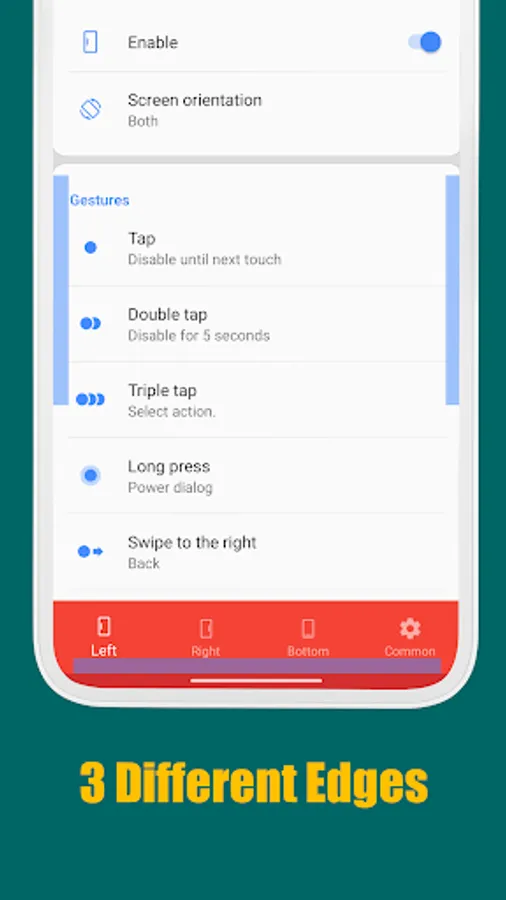 Supports many different gesture types: Tap, Double tap, Long press, Swipe, Swipe and hold, Pull and slide, and Pie controls