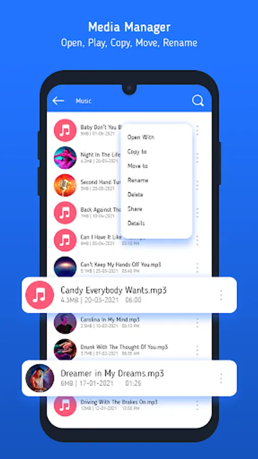 Local file manager to manage files from internal and external storage (SD card). It will show you all the files and folders including hidden file. Media manager to support multi selections for operations such as open, move, rename, delete, favorite any types of files. All file supported file explorer (images, videos, audio, pdf, txt, doc, ppt, excel, word).