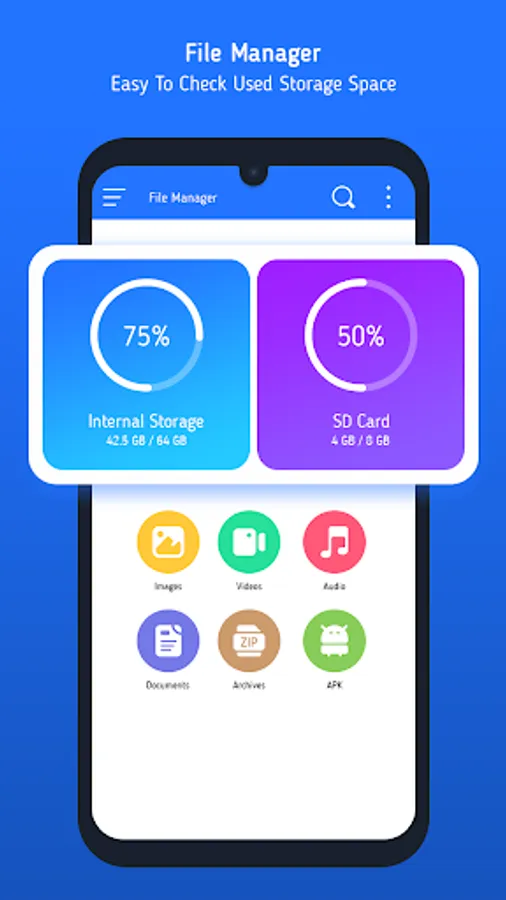 From the dashboard of the file manager you can check used and free storage space of your all local storage. It's help you to analyze and free up the unused files.