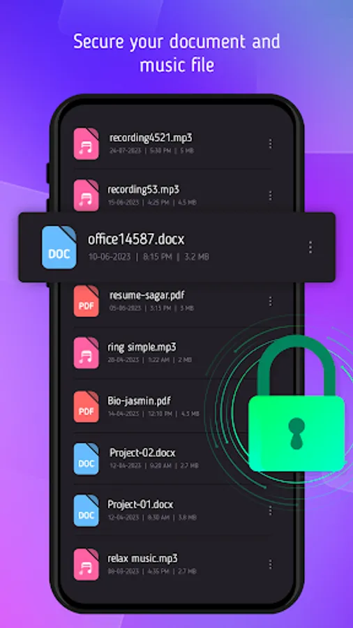 Keep your most important and private document safe by others while you share your phone with others. Gallery Lock private vault is one of the most usable app for your document security. You can hide documents from the file manager and keep it safe within this app. You can also safely open any types of documents and files within the Gallery Lock private vault document manager.