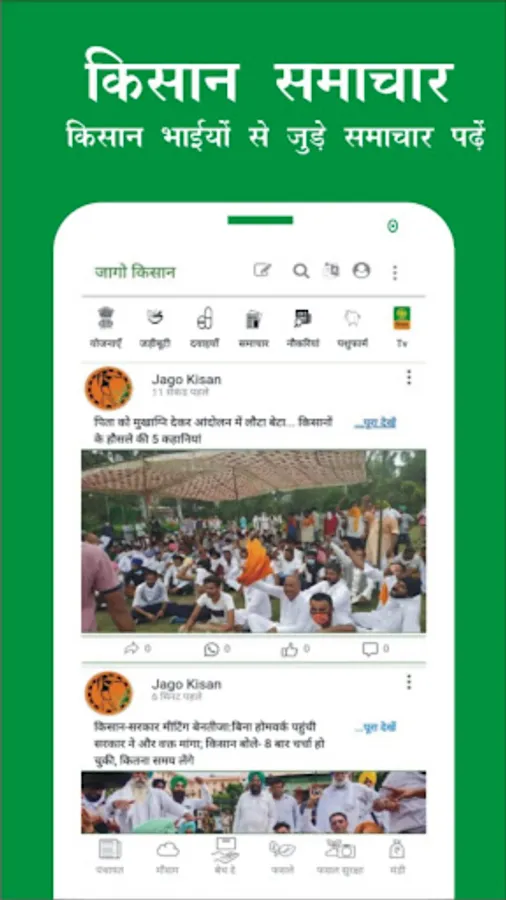 Jago kisan App for Farmer's Kisan Social media ✓ PM Kisan Samman Nidhi Yojna ✓ Fasal ✓ Mausam ✓ Buy & Sale ✓ Fasal suraksha ✓ Mandi bhav
