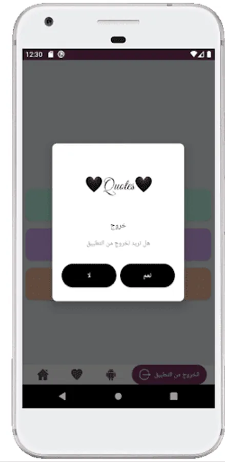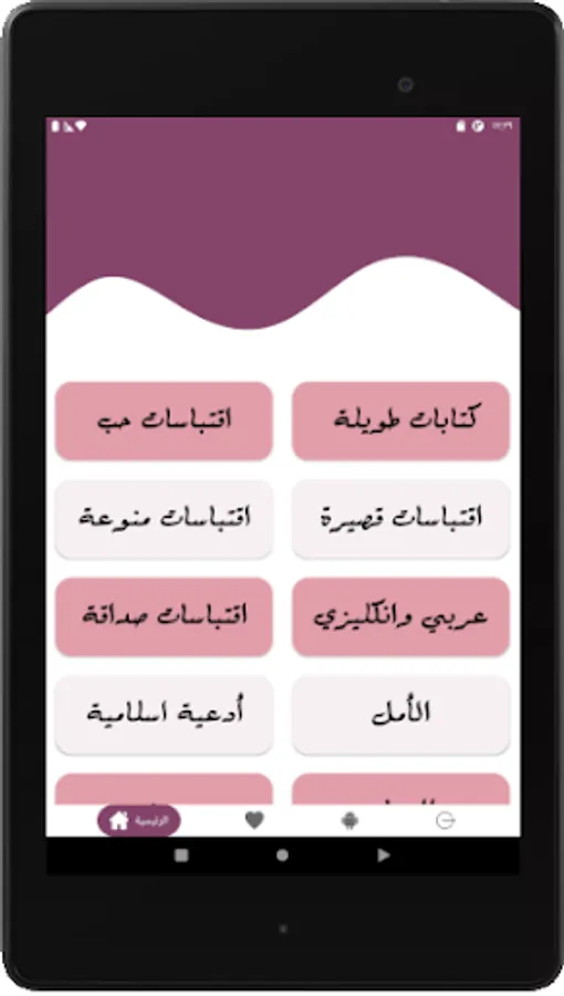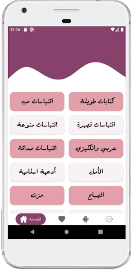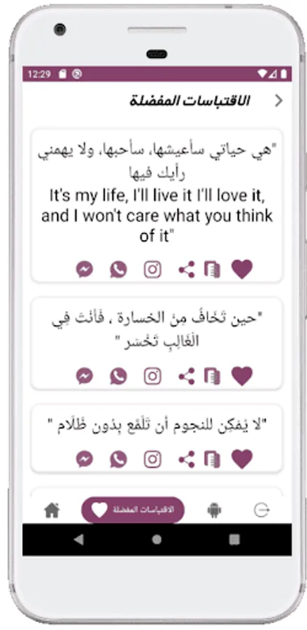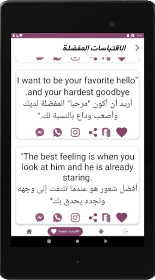 The program displays a collection of the most beautiful various quotes and contains a section in Arabic and English