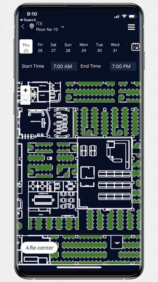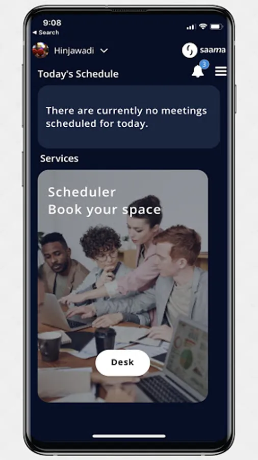 The simple interface of the Saama Workspace App provides users to book their desk before coming to campus.