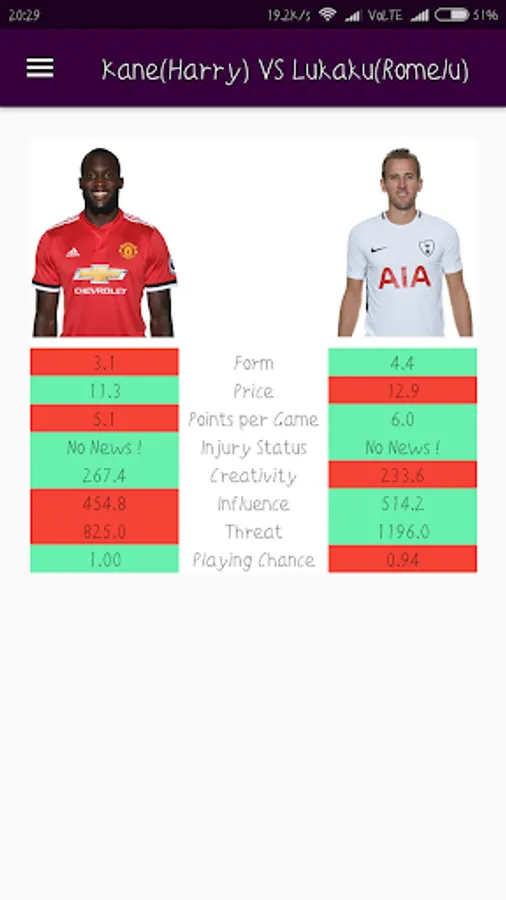 This app uses a lot of statistics to help you create the perfect fantasy team for English Premier League. It also has an option to compare players head to head.