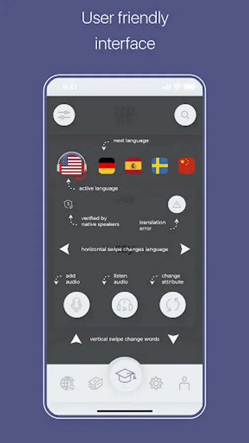 Word memory flashcards allow you to study at anytime, anywhere in the world, the user-friendly intuitive interface allows you to customize the word check feed, add new foreign words and expressions, correct translations and special audio tracks allow you to listen to the pronunciation made by native speakers, upload your own pronunciation and help other users, who are learning foreign languages by checking their pronunciation. In addition, you can keep track of all your learning statistics, use handy filters in the card viewer, and search for words in any language in the app. And many other benefits for independent learning of foreign words and expressions, see for yourself!