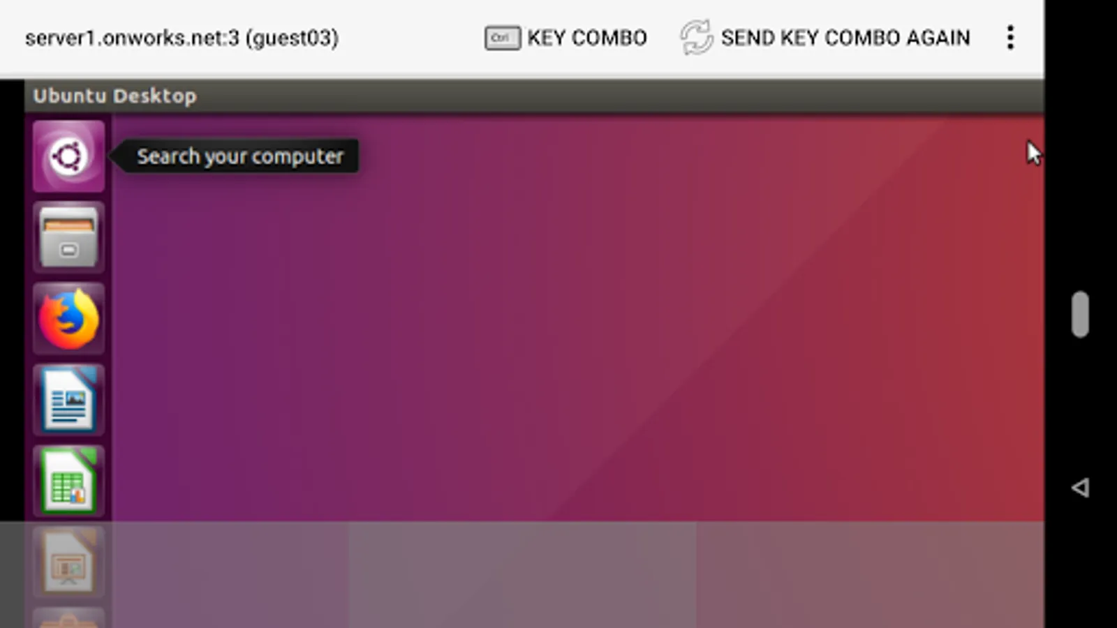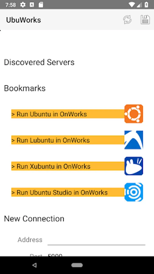 UbuWorks is an app that allows users to run and connect to a multiple kind of Ubuntu OS of the free hosting provider onworks.net from your Android device, or to any other free hosting provider that provides a VNC server. In fact, this app is a VNC client preconfigured with the OnWorks ISO images to be connected to one of our selected kind of workstations :