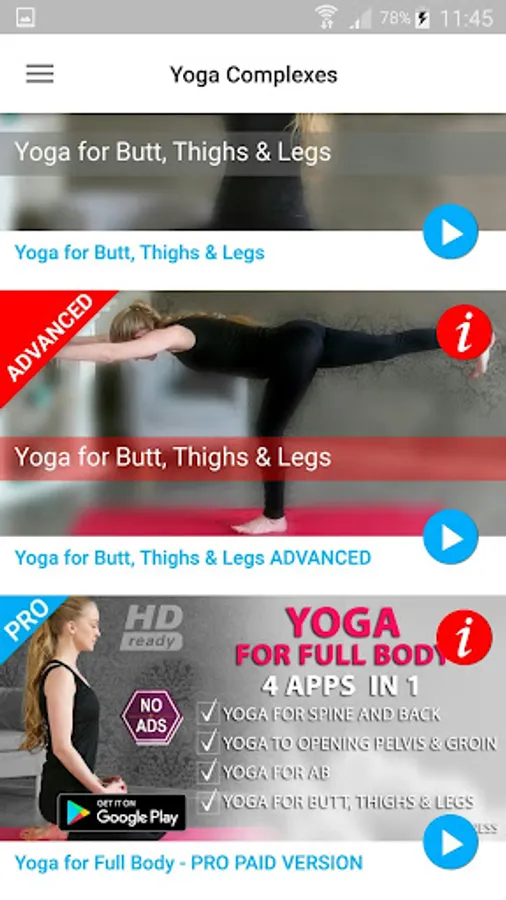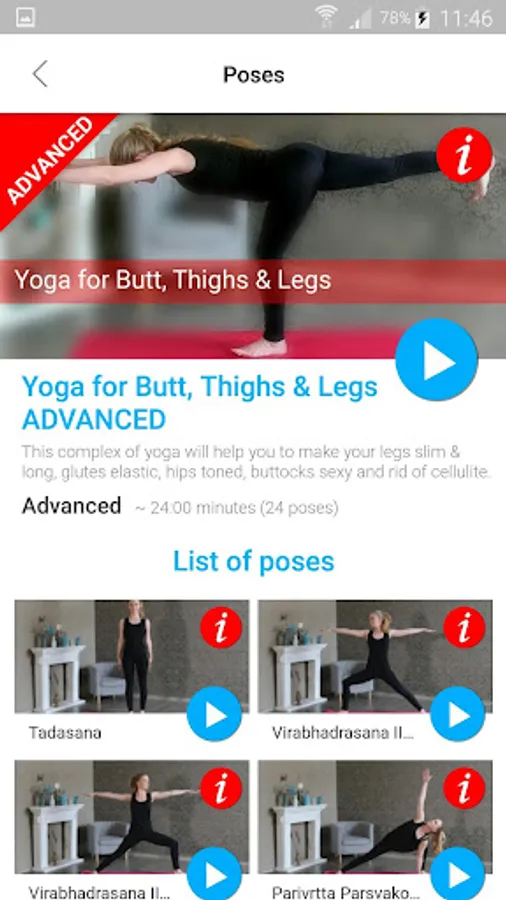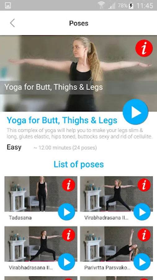 The app "Yoga for Butt, Thighs and Legs" contains asanas and poses to help you make your legs slim and long, glutes elastic, hips toned, buttocks sexy & rid of cellulite.