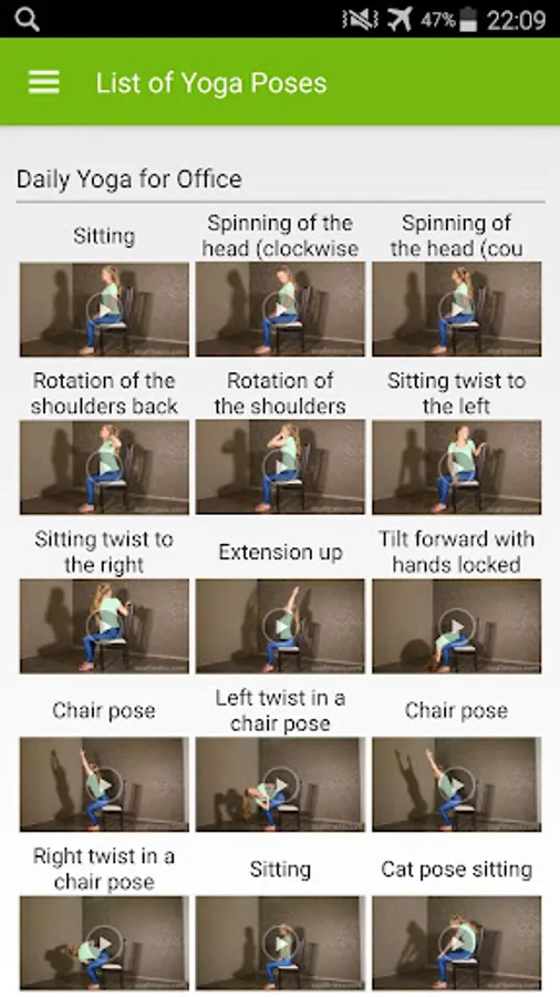 "Daily Yoga for Office" app is the product of the skilled trainers’ and yoga instructors’ work. Compilers have selected the most effective yoga exercises, adapting them for modern office workers. Regularly practicing yoga sitting on a chair or a small rubber mat, you achieve a number of effects:
