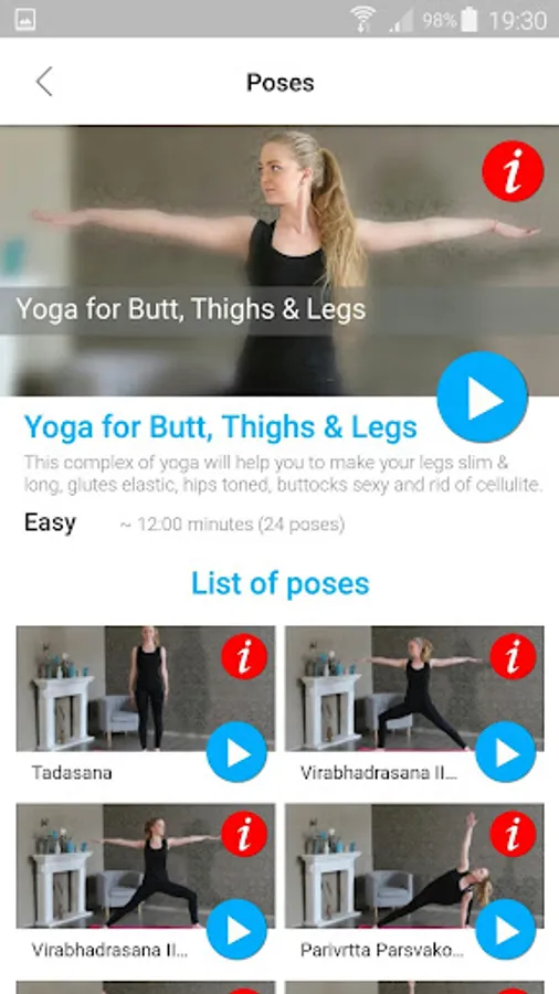 The yoga complex for butt, thighs and legs contains 24 asanas that will help you to make your legs slim & long, glutes elastic, hips toned, buttocks sexy and rid of cellulite.