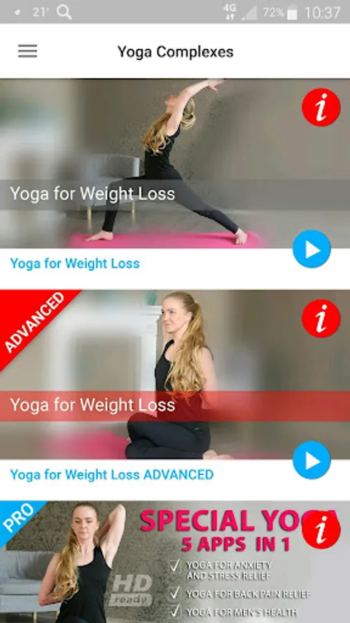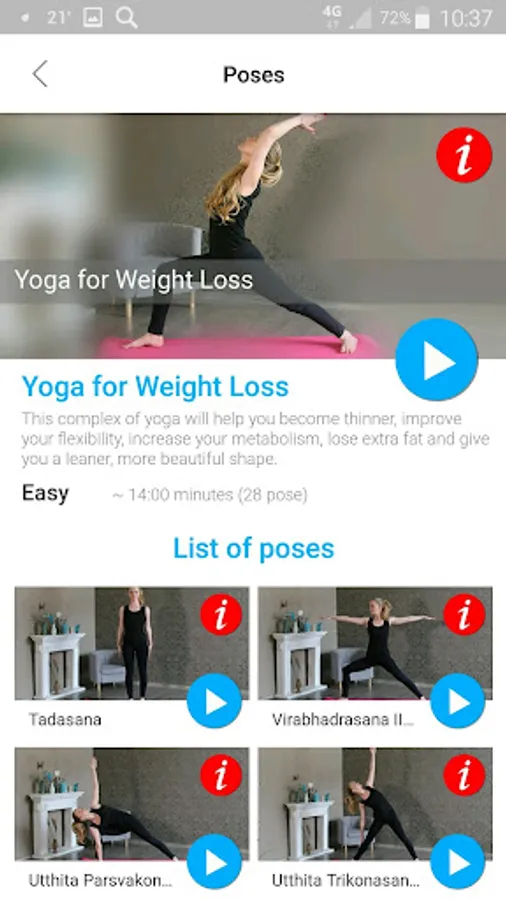 Video classes of our application “Yoga Poses & Asanas for Weight Loss & Fat Burn” will help you get acquainted with the first yoga asanas and learn to do them properly.