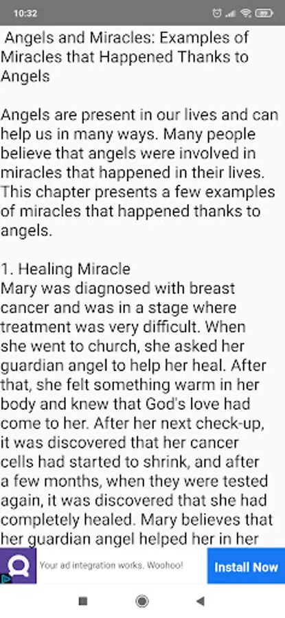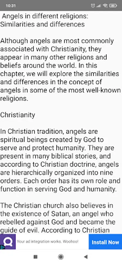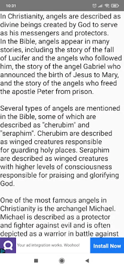 One of the main advantages of the "Angels" application is its extensive database of angels. This application allows you to learn more about different types of angels, such as archangels, guardian angels, healing angels, and many others. The application also contains detailed descriptions of their characteristics and meanings, helping you better understand their role in your life.