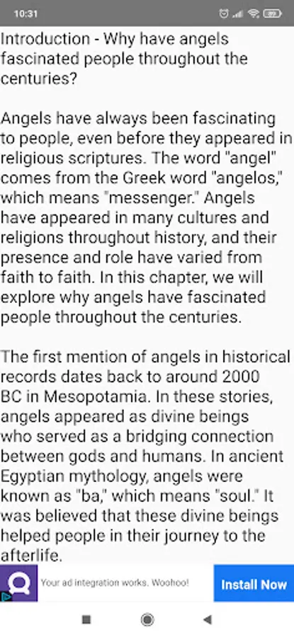 In summary, the "Angels" application is an excellent application for anyone seeking spiritual peace and inspiration. This application allows you to connect with your angels and open up to their presence in your life. If you want to learn more about angels and their role in your life, download the "Angels" application today and start your journey to meeting your angels.