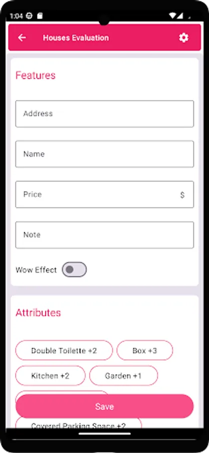 Thanks to the Houses Evaluation app you can create a list of all the houses you will visit and assign a score to each based on various evaluation parameters and, in addition, you can save the main information such as: address, price and agency agent information and / or homeowner.