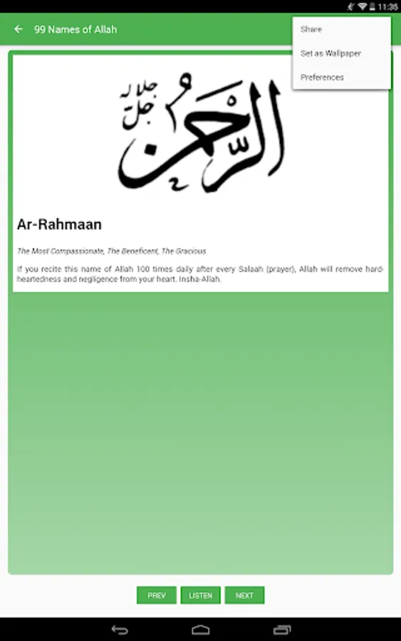 * A Live Wallpaper displaying all of 99 Names of Allah