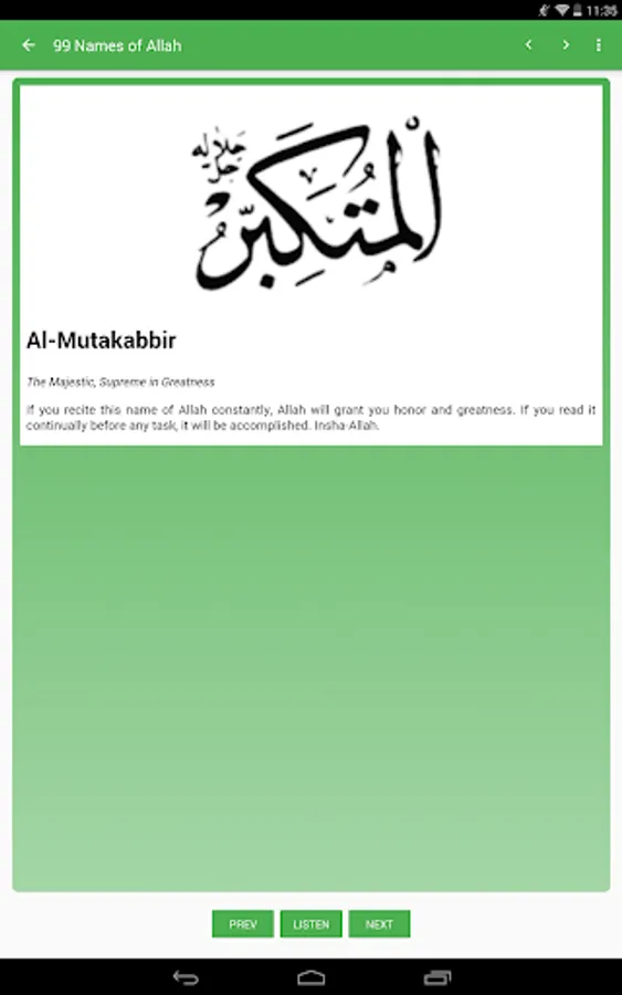 99 Names of Allah Pro is an application to read and to listen the 99 Most Beautiful Names of Allah on your smartphones and tablets. Applications is updated with a new version supporting Material Design.