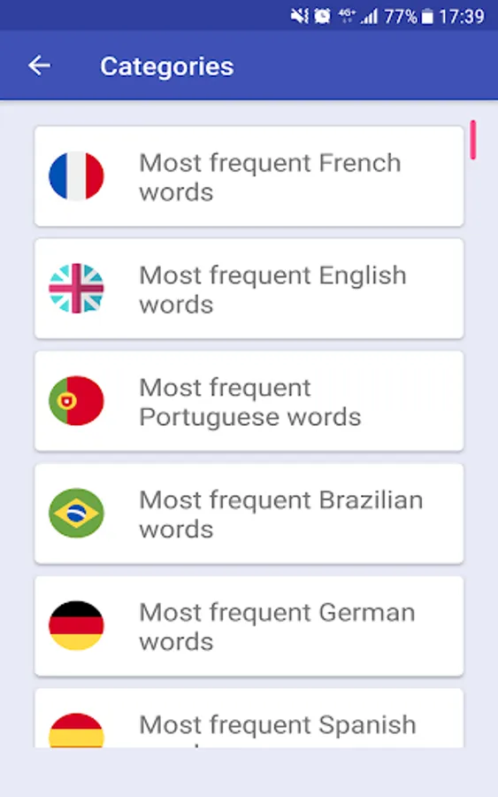 - Most frequent words in English, French, Portuguese, Brazilian, German, Spanish and Italian