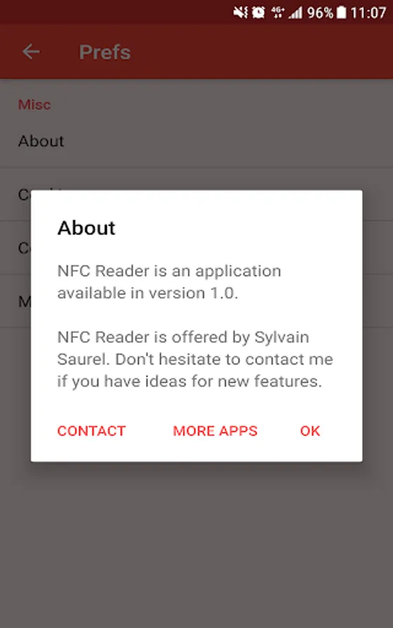 If you have a problem to read a tag, don't hesitate to contact me by email to help me to fix the problem. Your feedback and ideas to improve NFC Reader are also welcomed. Send me an email for that : sylvain.saurel@gmail.com