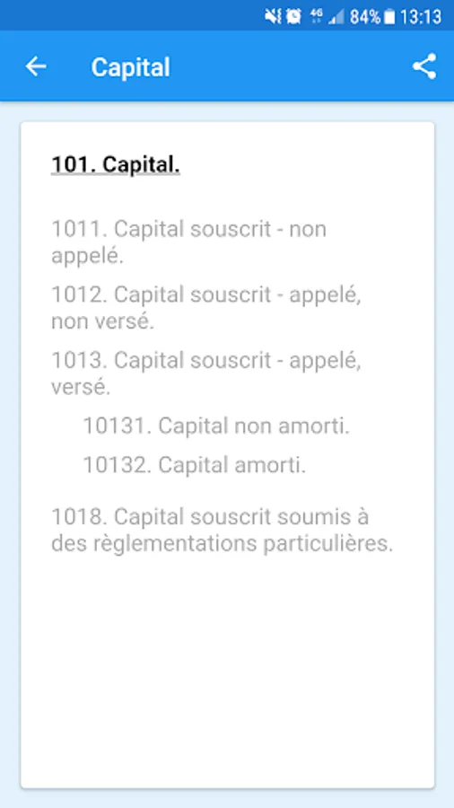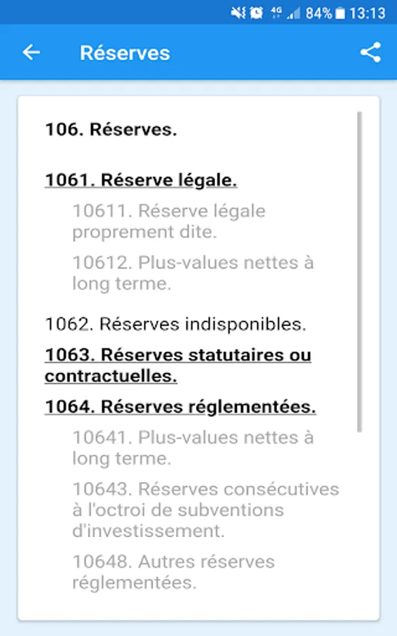 La fonctionnalité de recherche vous permet d'accéder facilement aux détails d'un compte donné en saisissant les chiffres par lesquels il débute. Enfin, vous n'aurez qu'à appuyer longuement sur l'intitulé d'un compte ou d'une classe de comptes pour copier son contenu au sein du presse-papiers pour un usage futur avec vos autres collègues comptables. Plan Comptable Général est donc un outil indispensable à toutes les personnes travaillant dans le domaine de la comptabilité et de la finance.