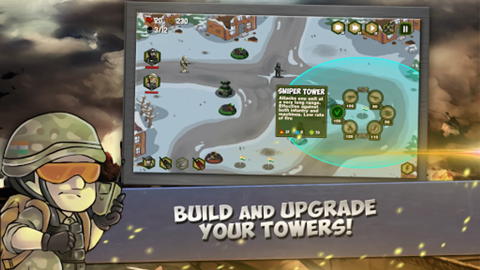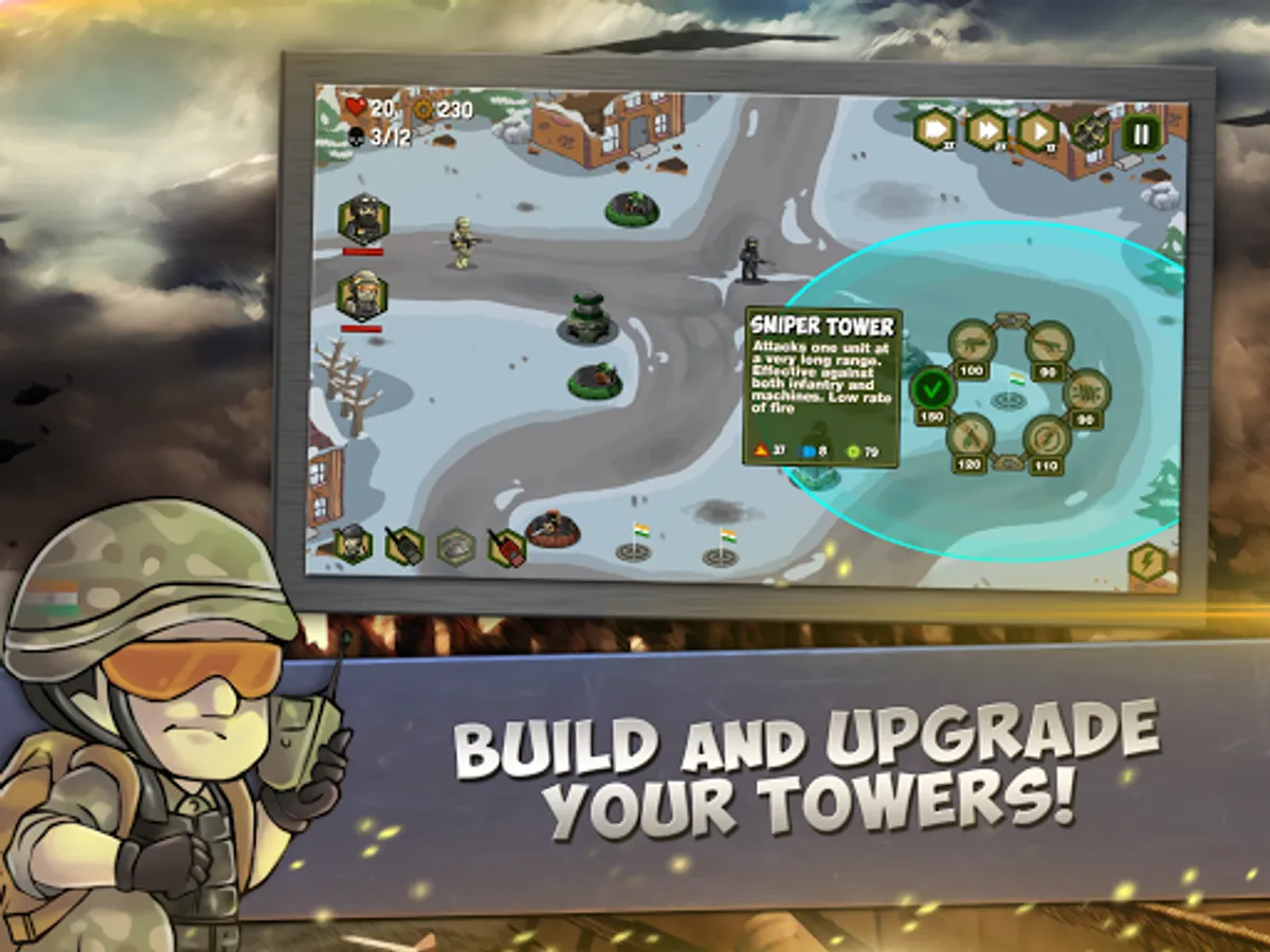 Full surgical strike is greatly needed at this deadliest war to defend the Indian army base from enemies. Make your base strong with different towers and defend it from enemy attacks.
