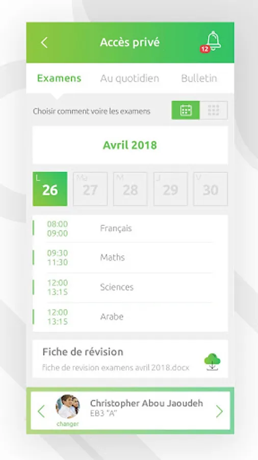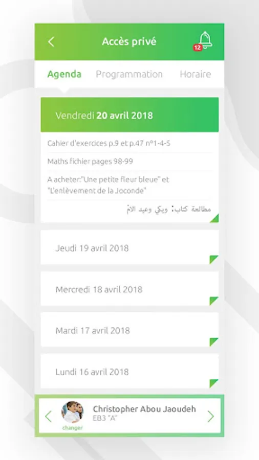 Families can access all information about the agenda, annual plan, schedule, exams, report card, memo, weekly activities, breaking news, absences, visits to the nurse and remarks via their mobile device.