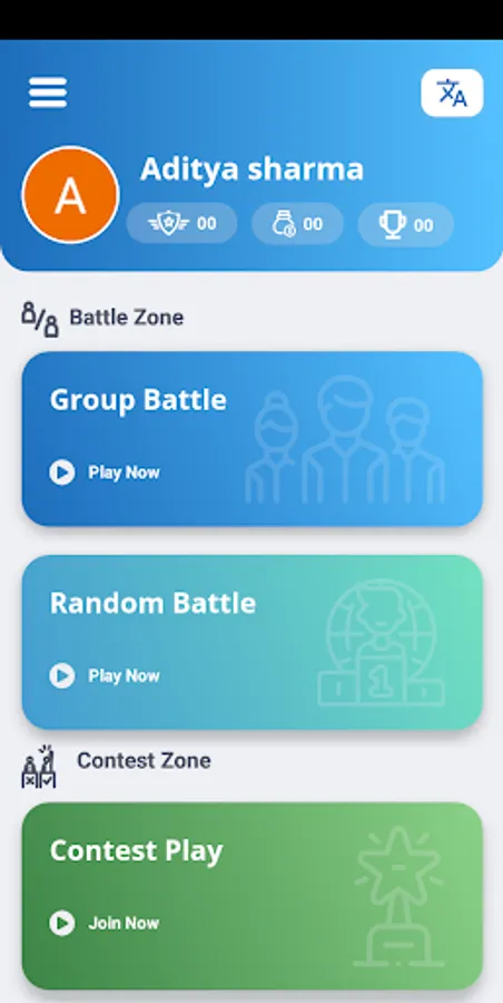 then we have a contest play where you will see random questions from any quiz and you have to answer them correctly in order to win the contest.