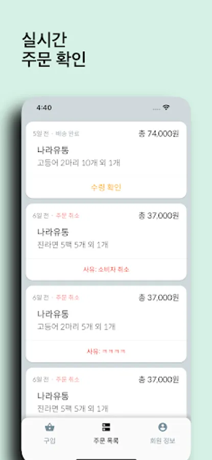 Win-Win is a service that provides convenient delivery of various food materials by directly connecting store owners and distributors.