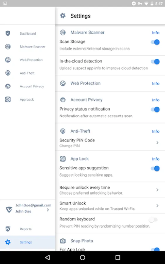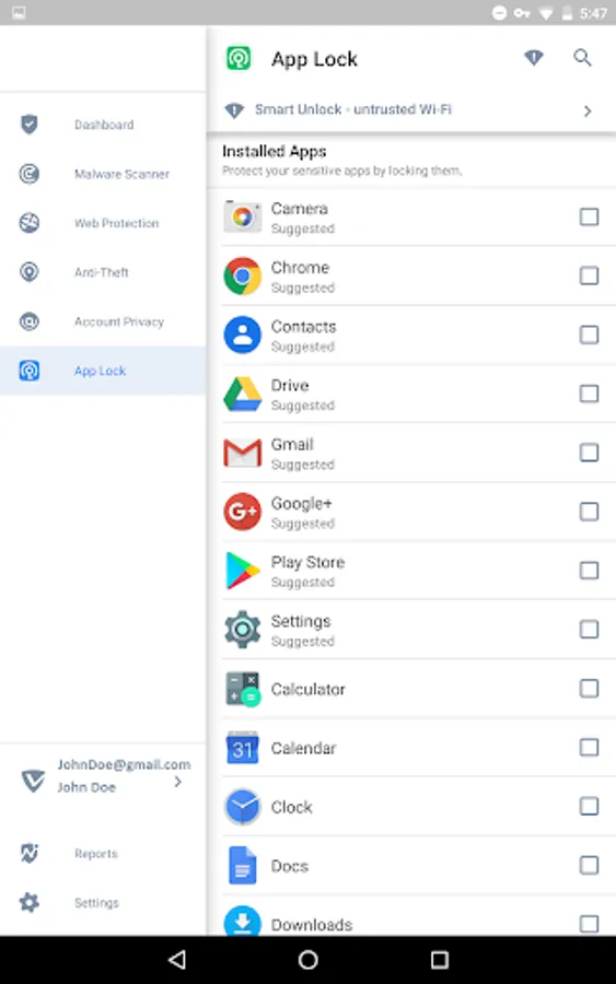 Our on-install scanning and on-demand scanning features will protect your device and data against malicious apps. Scanner is always up to date with the latest intel on viruses and automatically scans apps for malware as you install them.