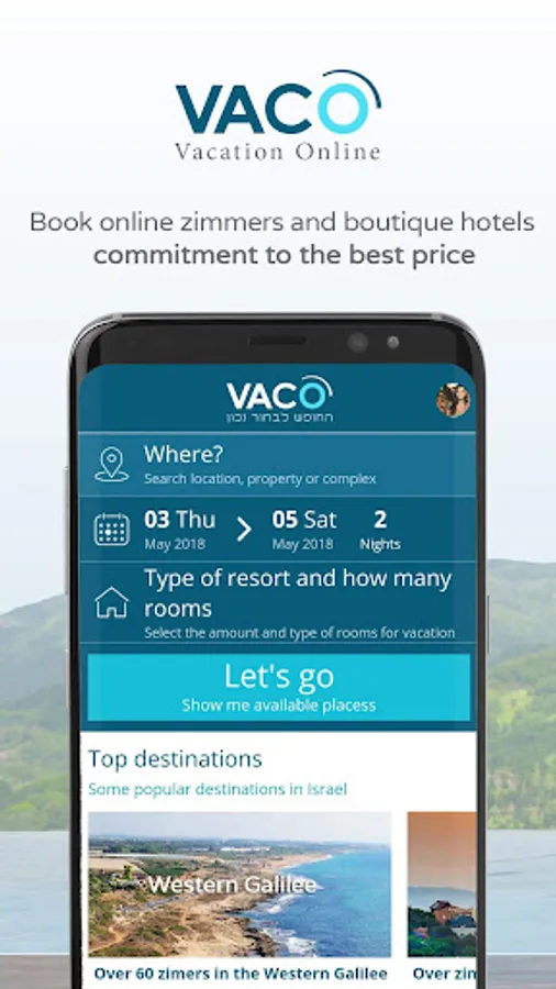 Download VACO app that gives you the freedom to choose right vacation for your next vacation in cozy zimmers in Israel with full transparency and at the best prices.